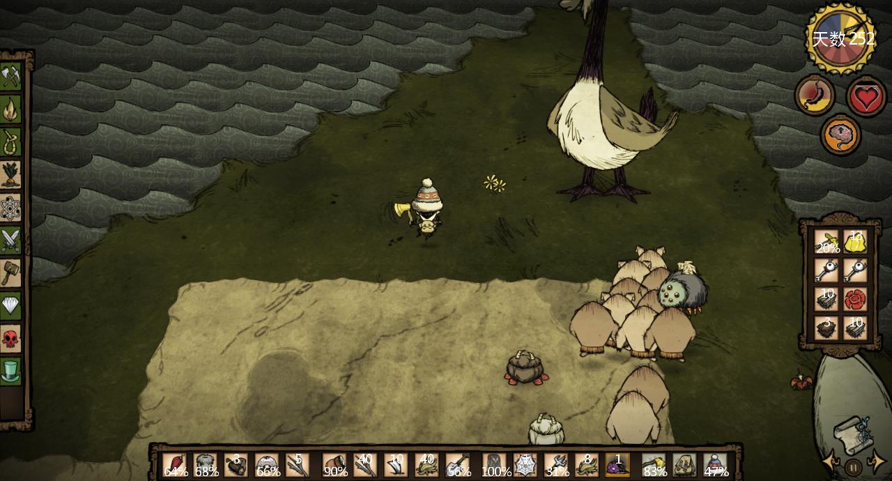 多灾多难的农场整改,刚刚来完狗就来boss,砍树想做鹅卵石路又出树人,然后又出狗,又出春季boss,还是来狗 杀了不知道多少波狗了 要不是有这个狗牙阵地我很可能在那天晚上死掉 然后祭坛复活还是肉身雕像复活呢?那两个东西都离我比较近