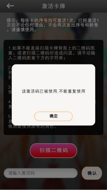 是已经激活成功了,可能你没有注意看,所以再激活,当然显示已被激活过。不然你不可能有那个角色的。