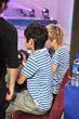 一定是在对跟她招手或者喊厉娜的人招手! 哈哈