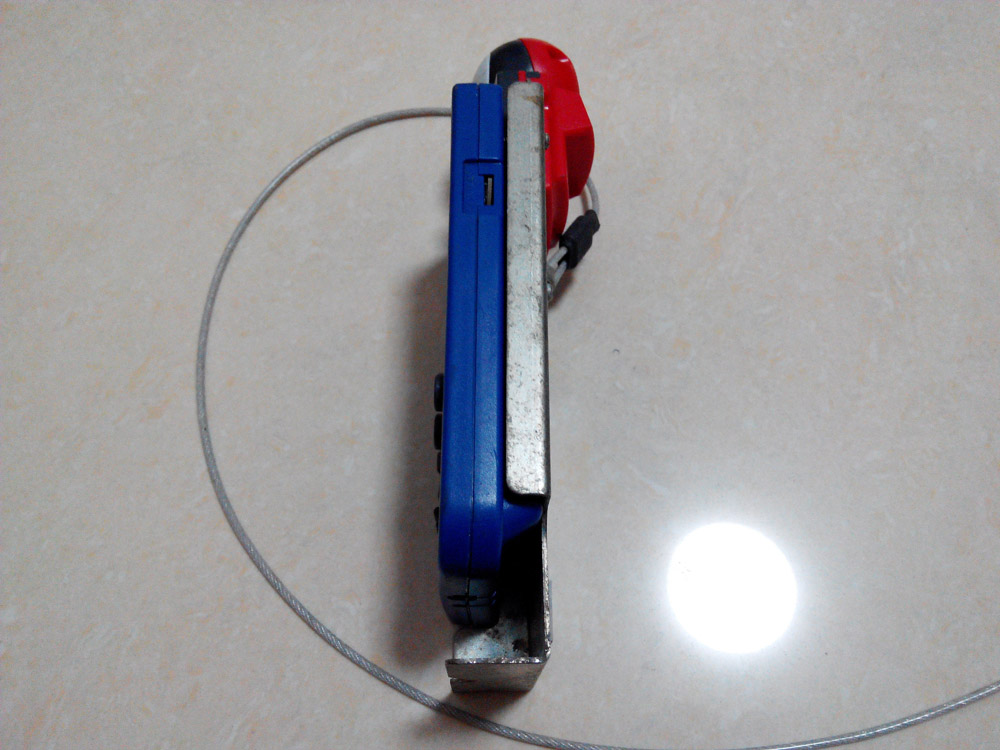 摄像头插一部GBP里,后面用一块厚厚的钢板(冲压成型)包嵌着,后面还用一条钢丝连着,就像现在商场里卖笔记本电脑的防盗措施一样。
