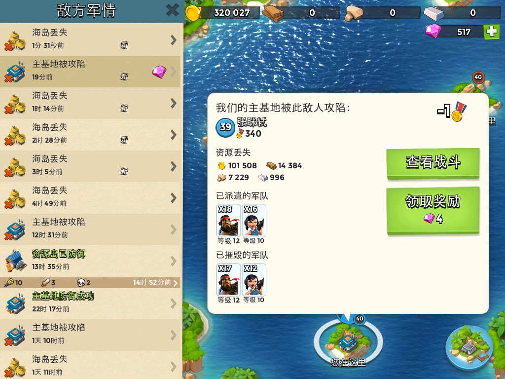 原来每样资源还剩不少,14级的保险库,被撸完居然3个零。。。。