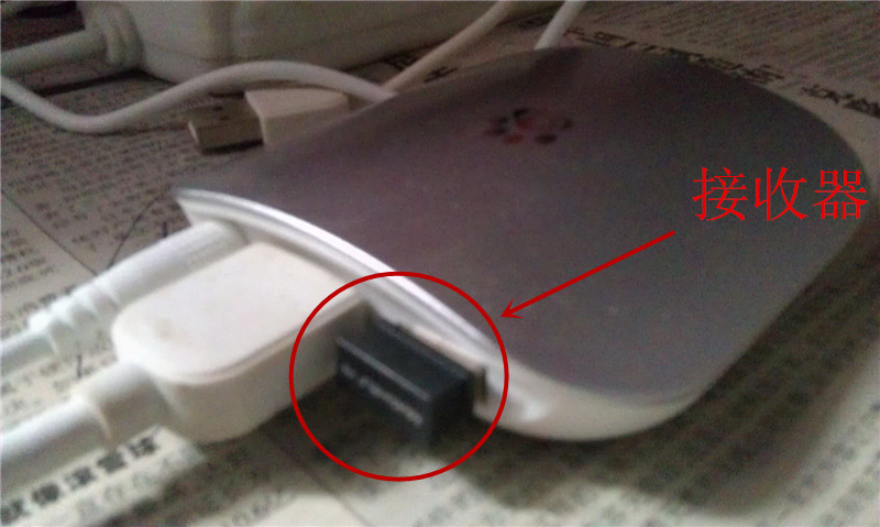 玩游戏之前,要先把接收器插在影棒后面的USB插口上,如图