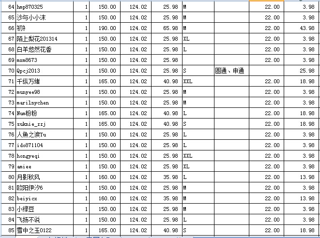 要不就是偶没看明白这张表 有些交了165的是神马情况,没注明发快递;但有些交了150的,却注明了发快递?(是选择到付了吗?)感觉好混乱,嫩好好理理吧