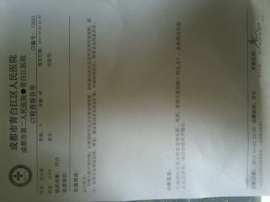 昨天晚上我妈妈突然头晕开始呕吐,然后去医院检查,那个医生太年轻了可能没得啥经验的,我也没太听清他说的什么。各位大神帮我看哈。后面还有一张验血的报告