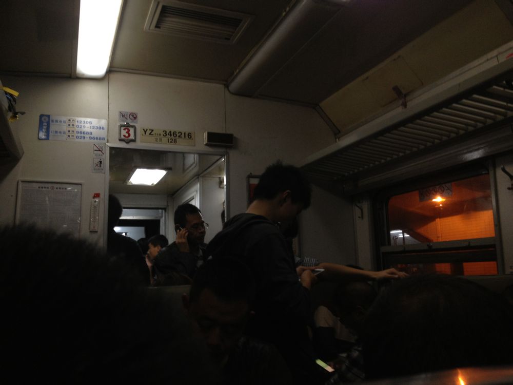 上车人太多 我们从过安检到上车差不多花了15分钟 后来这车晚点18分才开= = 车上各种站票 过了蔡家坡车厢才空起来 最后晚点40分钟到的宝鸡