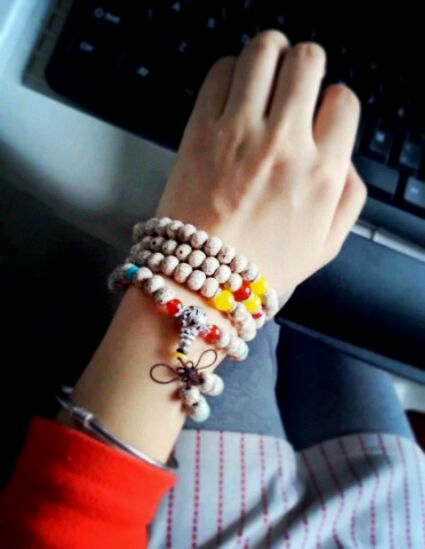 而以菩提来命名的佛珠质料,总计有三十多个品种。这其中有依产地来命名的,如天台菩提、天竺菩提等;有依纹理来命名的,如星月菩提、凤眼菩提等。携带一串菩提手串,是会给人增福无量的。《佛说较量数珠功德经》说: