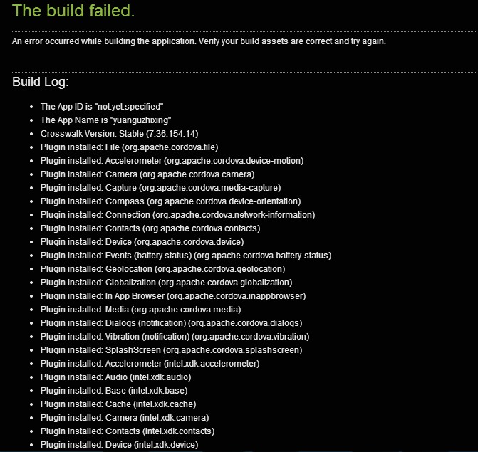 这个真没遇到过,很难失败的,你导出的是android还是phonegap?编译用的是crosswalk还是phonegap?