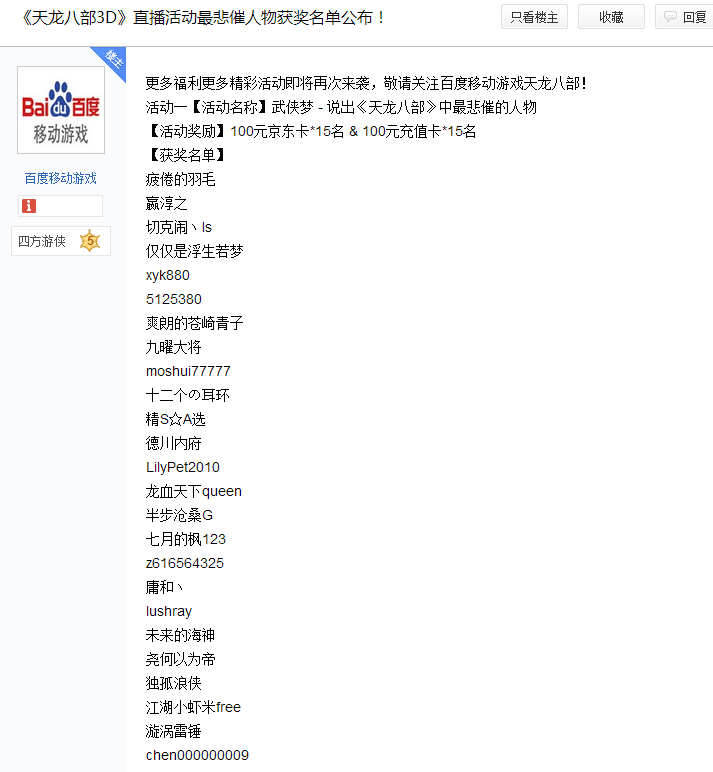 看到你的回复我也是醉了,我能做到的最多就是下次看到这种活动我也@你。别人明确都给卡号密码。而且我最近确实记忆里有根天龙3D有关的回忆。所以就试试咯。你长得真美。那就别想那么美了!~