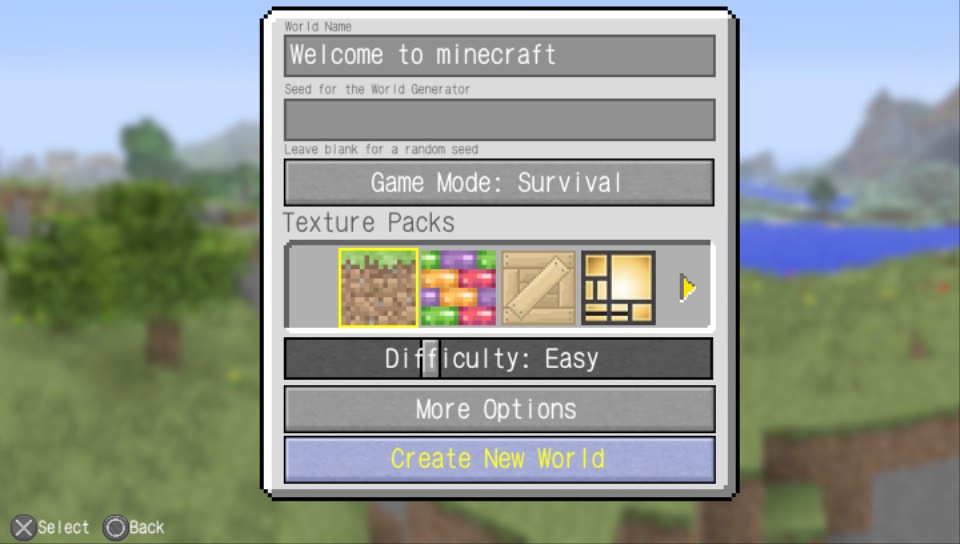 先建个档。本人非常小(胆)心(小),所以没有什么把握的时候难度都选简单或者普通,如果要搭建筑或者想发展一段时间那么就会切和平。。。。。。。新地图发展一会吧,打算从老存档里面进行“野营”(相当于二周目探险生存,不过有一周目的道具。。。。。。)来完成实况。不过打龙什么的,还是新档里面进行吧。(切存档会有注明)