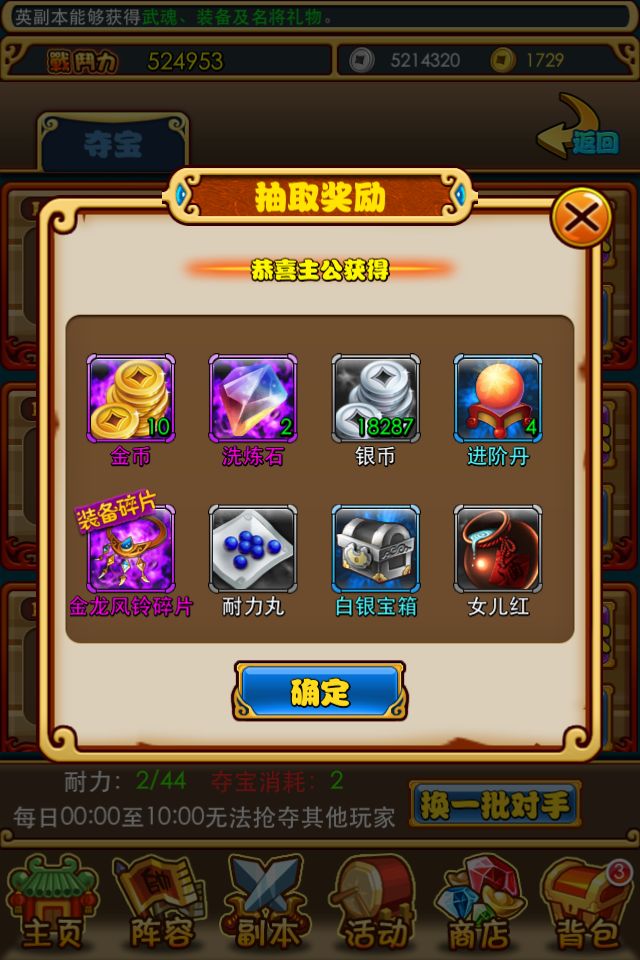 夺宝10连,,就有这么多奖励。