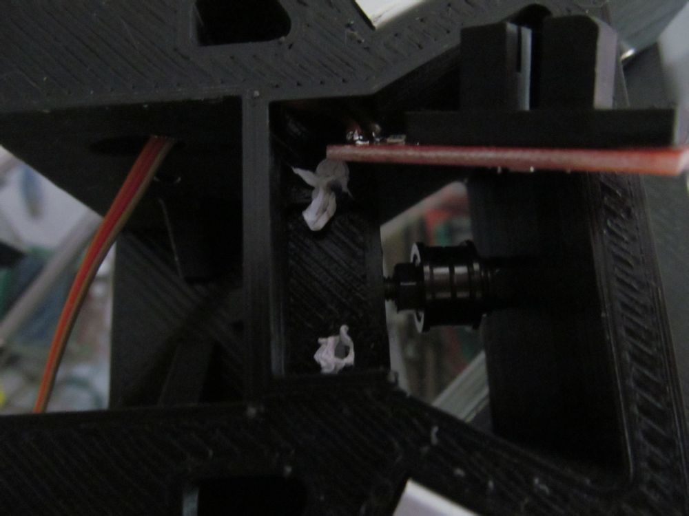 限位开关上的接插件焊掉已经,需要焊接1.5米长的排线来信号引出,焊好以后把限位开关安装到上部连接件中,同时信号线穿过过孔,引到3030铝型材的安装槽中,这样一来就能从3030的凹槽引线到安装在底部的主板上。