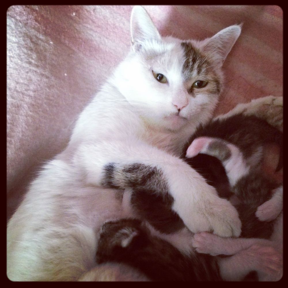 于是~我怀孕啦生了四只猫咪。