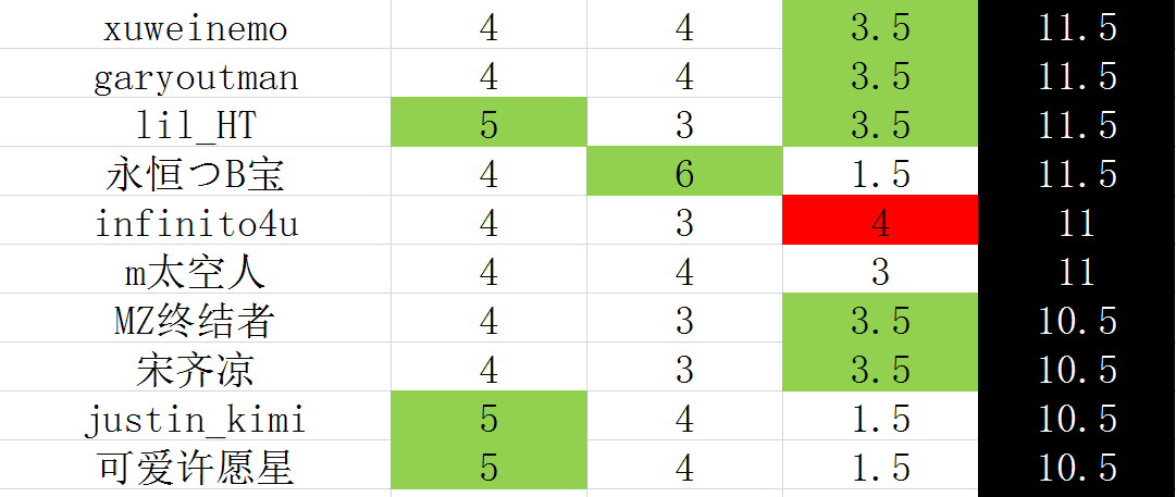 本周结果请看剧透贴