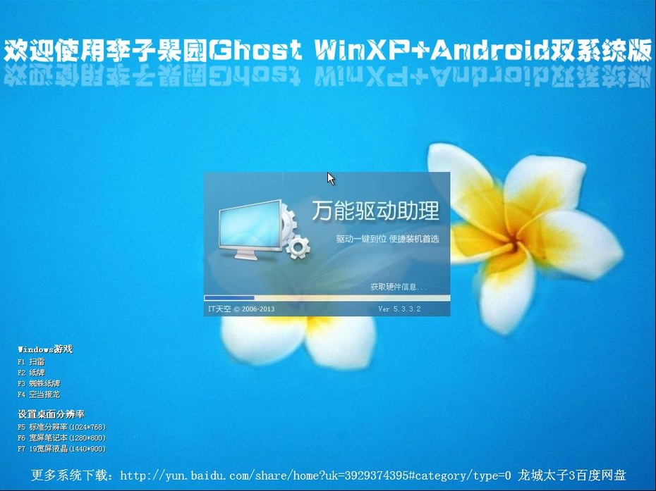本套系统包括WinXP+Android-x86、Win7 64位旗舰版+Android-x86、Win8 64位专业版+Android-x86三版系统,预装Android-x86安卓4.3,若4.3无法启动或有其它问题,请换其它Android-x86版本,