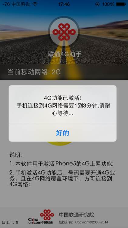 今天联通又一次更新了联通4G助手,支持5S使用4G除了电信的苹果5不可以,由于我这里还没有覆盖上联通4G只有3G 助手可以切换2G3G4G,下面上图,安装联通助手的网址是