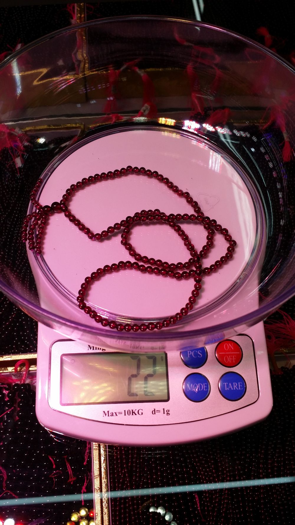 在此我想说无论是石榴石,还是其他水晶彩宝的三圈手链,厂家只是用尺寸去做标准,不会一颗一颗去数有多少克,除非是零售DIY的卖家。对于厂家来说,108三圈,只是一个名称,是手链三圈的代称,不是真的108颗那么标准。因为厂家是批量生产,跟零售商家不同,没有办法一颗颗去数,然后再串成成品链。这样会导致工费加高,产品价格随着升高。而且,如果每个珠子尺寸的三圈成品链都按照108颗去串,就会造成有的尺寸很小,大部分客户带不了,有的尺寸很大,大部分客户戴着会大。
