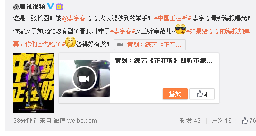 腾讯视频:#中国正在听# 李宇春最新海报曝光!
