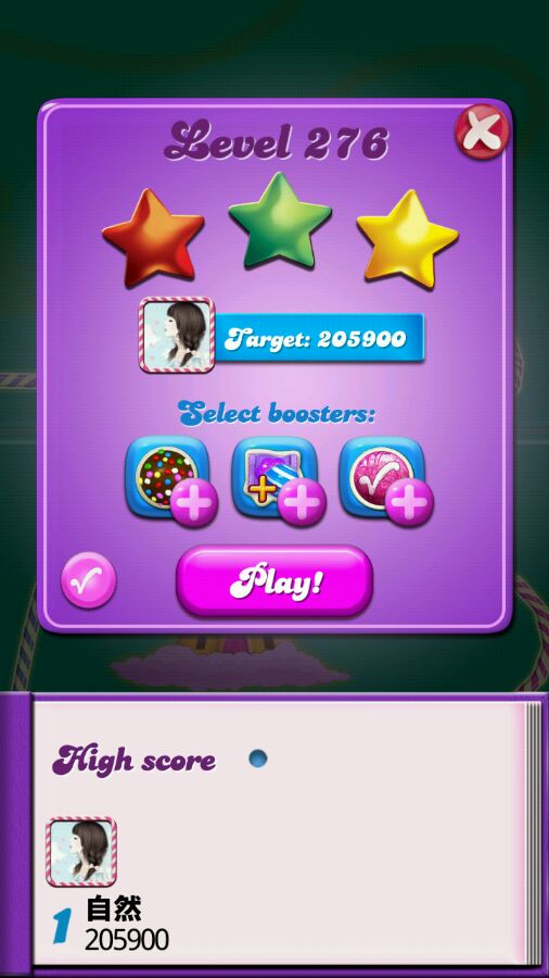 因为卡在猫头鹰276,很久没玩了。昨天偶然发现candy crush更新了,猫头鹰276增加到60步了,这样就容易多了。