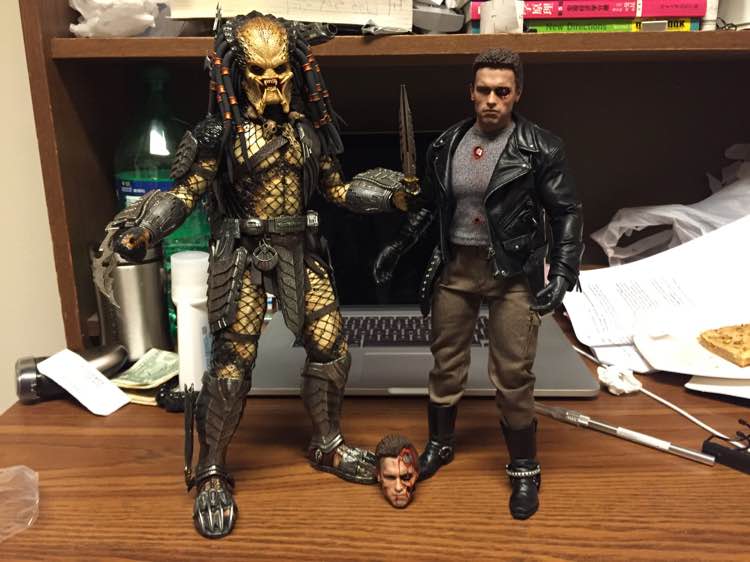 来一发特别的铁血战士——阿诺对铁血战士说:时间过得真快,想当年我还没有金属骨骼,你也还没当上队长