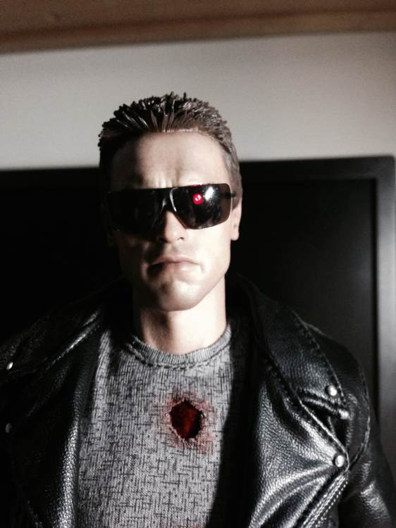 头雕这次拿到实物以后真是没话说了,很好很强大,我觉得完全符合我心中T800在T1里的形象,战损头还可以看到牙齿,照片可能不是很清楚,仔细一点看应该就能看到