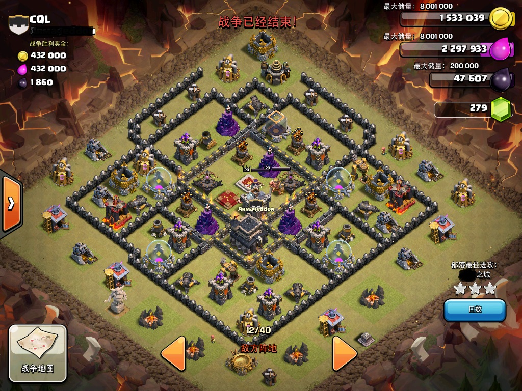 楼主自己待过3个都是以8、9本为主的常胜部落,经历部落战无数,三星率比较高。