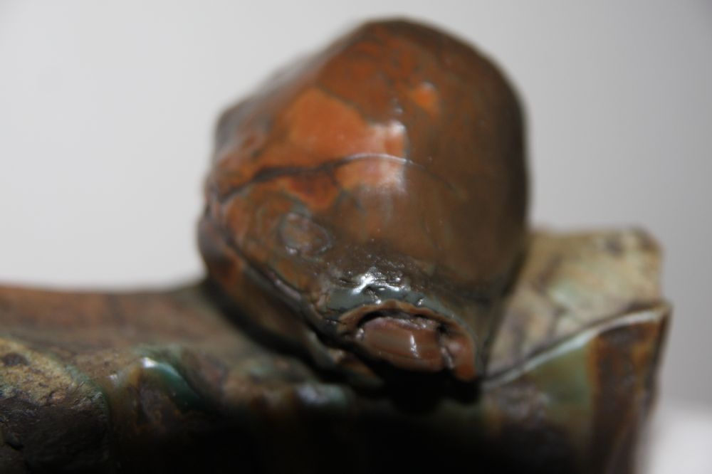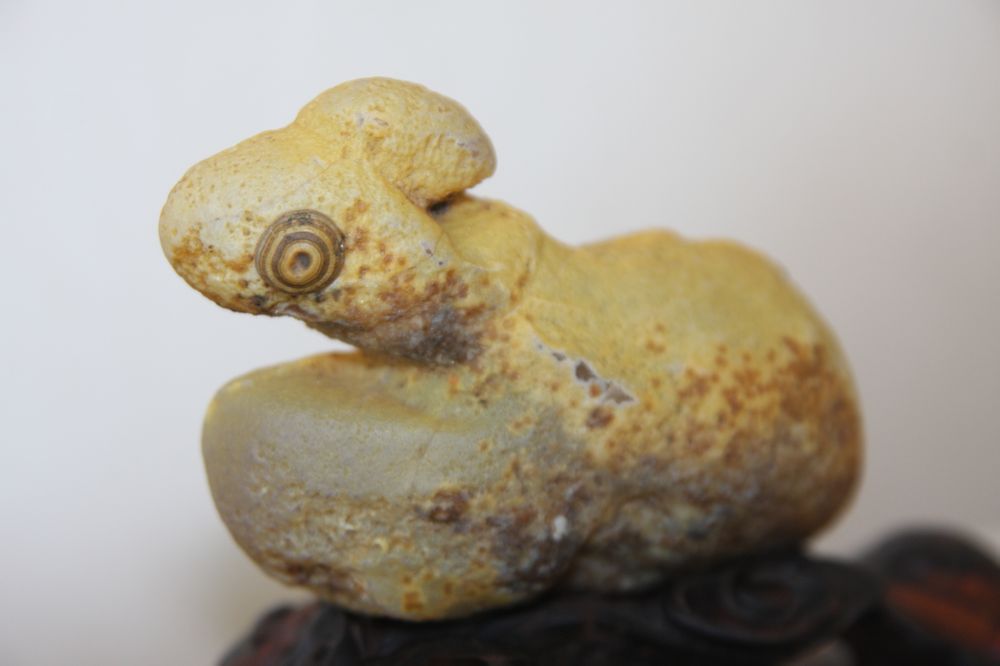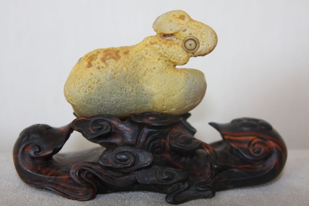 本来玩其他石头的,偶然的机会碰到了阿拉善。发现卖玛瑙的逢石必称象形。因为之前看的雕件比较多,不太适应。于是象形的都不要。只选雕刻料。不过第一件还是让我蒙上了一个象形。一堆生姜里选的。初生羊羔。
