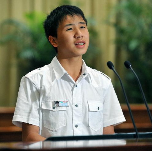 2008年6月,雷楚年成为全国37名抗震救灾英模报告团的一员,他是代表团唯一的学生。老师说,雷楚年作报告很放得开,他的语言能力很强。不久,他接到当奥运会火炬手的通知。图为2008年,雷楚年成为北京奥运会火炬手。
