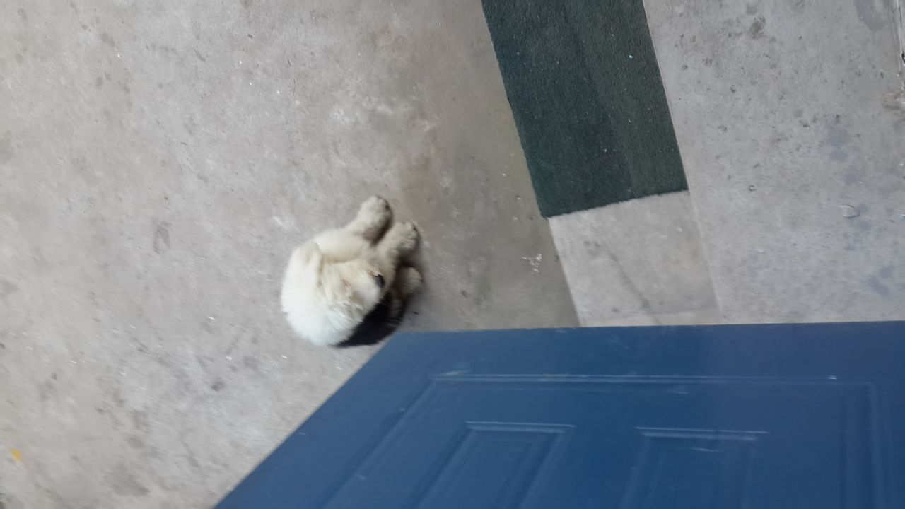 我也是刚买的,不到三个月大。买的干洗粉。不敢让它下地。晚上自己在笼子里一直嗷嗷,所以就把它拿出来放沙发上了。头疼死了