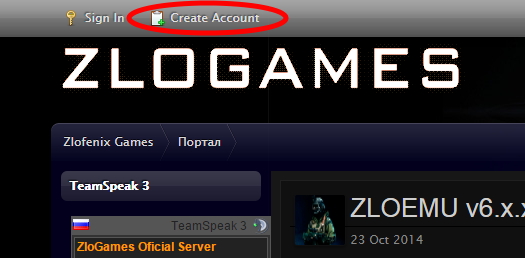 如果上面的申请网址,无法进入,请到 http://zlogames.ru ,进入后,按左上角的 Create Account 就能申请了: