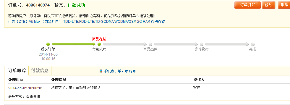 已付款,坐等收货