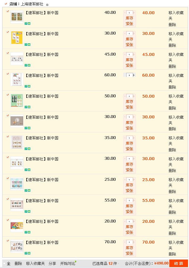 交通值数:快递15 (这次没啥利润,多以就不包邮了,请大家包涵;挂号太容易折票了,为了保证品相,所以走快递)
