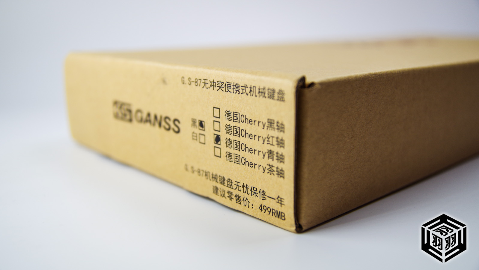 ▲看到ganss87的包装盒的时候,就瞬间喜欢上了,一则是因为个人对这种牛皮纸本色的包装比较有爱。二来是因为这个牛皮纸盒子应该是我到目前为止看到过的所有牛皮纸包装里面质量最好,硬度最高的了。这样搞质量的包装选材,相信也能给予键盘不错的保护。▲包装的整体设计可以说已经简单到了极致。除了键盘的身份,就只剩下品牌LOGO和几行简单的键盘介绍。
