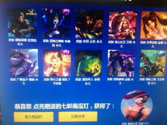 以前腾讯出的幸运召唤师活动,凭概率说说,有谁被天上掉下的馅饼砸中!现在新出了这个活动,有N个拖说什么好了好了。5块10块中什么传说限定皮肤。忽悠来忽悠去。我 往里面砸了100块毛爷爷。有些土豪买烟钱是1000元我不说了。钱不是好振的。结果出了两次50。给我是什么垃圾!