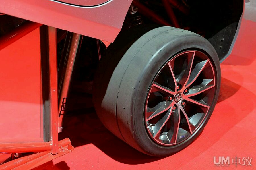 整个团队花费了11周打造出了这辆怪兽凯美瑞,尽管时间紧迫,但细节方面的处理仍突显出团队高超的水准,为了达到扮猪吃虎的目的,前门并没有被焊死,在凯美瑞XSE的外表下暗藏着复杂的红色管状车架,原厂凯美瑞的车架和底盘结构早已不复存在,取而代之的是团队自行打造的底盘和悬架结构。