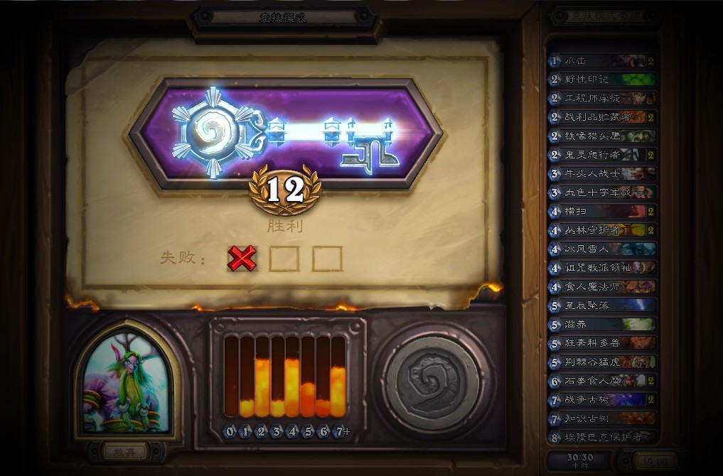 炉石已经玩了大半年了,天梯因为拿过一次传说后就没什么动力玩耍,所以楼主一直专注于JJC。就和大家一样,在点背的时候也经常低胜滚粗。但如果说JJC纯靠运气决定胜场,楼主觉得也未必如此,今天就晒晒自己在JJC12胜的那些截图,顺便加加好友以及回答大家关于JJC如何玩好的困惑!场均12胜的大神请口下留情。JJC橙卡奖励