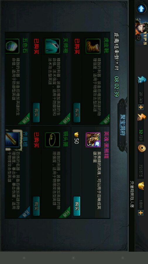 昨天也是赐福买装备,听说有可能有仙器出售,为什么我的就是这些蓝绿装,唯一好的鞋子还要300元宝呢。
