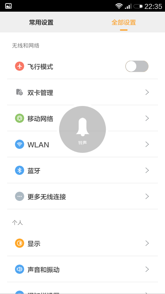 小米的设置界面
