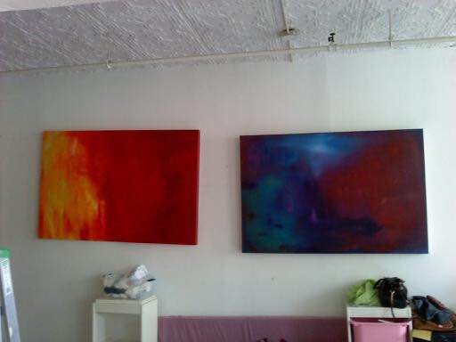 我的观点是这样的:在拍照过程中,如果镜头快速移动或者在夜间使用高感光镜头就会使图片产生形体的拖影效果,造成图像有规则的模糊。这是为什么我拍出那张照片。第三副画是laurel在all the world inside 画展中的其中一幅作品名叫:the velocity of dreaming 。 这是一幅关于速度的画。所以我在想,这是速度产生的效果,而laurel所绘画的,并不是非常抽象的东西,而是我们平时忽略,甚至得借由相机才能看得见的形态和物体。