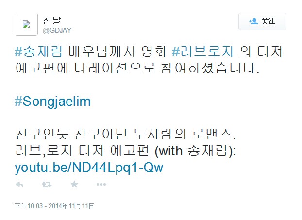 还记得前天再临新更的FB照片上,莫名其妙的那个“로지”吗?今天这个谜底终于揭开。推特消息,再临给爱情喜剧电影《love rosie(中文译名爱你,罗茜 )》的预告片进行了配音