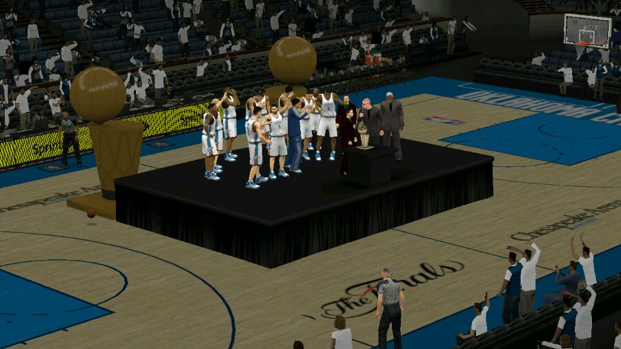 总决赛最后一场我的主场全场所有人都是白色球衣夺冠直接转会到快船,因为我喜欢快船的内线,虽然保罗去了雷霆,有点遗憾,但是没办法,不过狼王加内特也来了快船,这家伙,爽死,到了快船第一把就A+评价 ,,,,,,一楼先来,夺冠图
