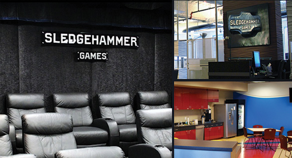 (大锤的创始人Schofield和Condrey)人们或多或少总是觉得Schofield有着几分士兵的姿态,因为他们经常看见Schofield出入动视暴雪旗下制造战争游戏的工作室,事实上,近几年他的工作正是为动视旗下最为知名的战争游戏系列《使命召唤》进行相应的开发工作。而就在今年11月份备受关注的《使命召唤:尖端战争》中艺术总监一职,正是由他来担任。在有着11年历史的《使命召唤》系列里,该作的创新程度可谓前卫,除了游戏背景设定在50年后的未来外,战场上的士兵甚至穿上了一种被称为外骨骼装甲的设备,来提升士兵的战斗、奔跑和跳跃能力,将单兵作战的强度提升到一个更高的境界。
