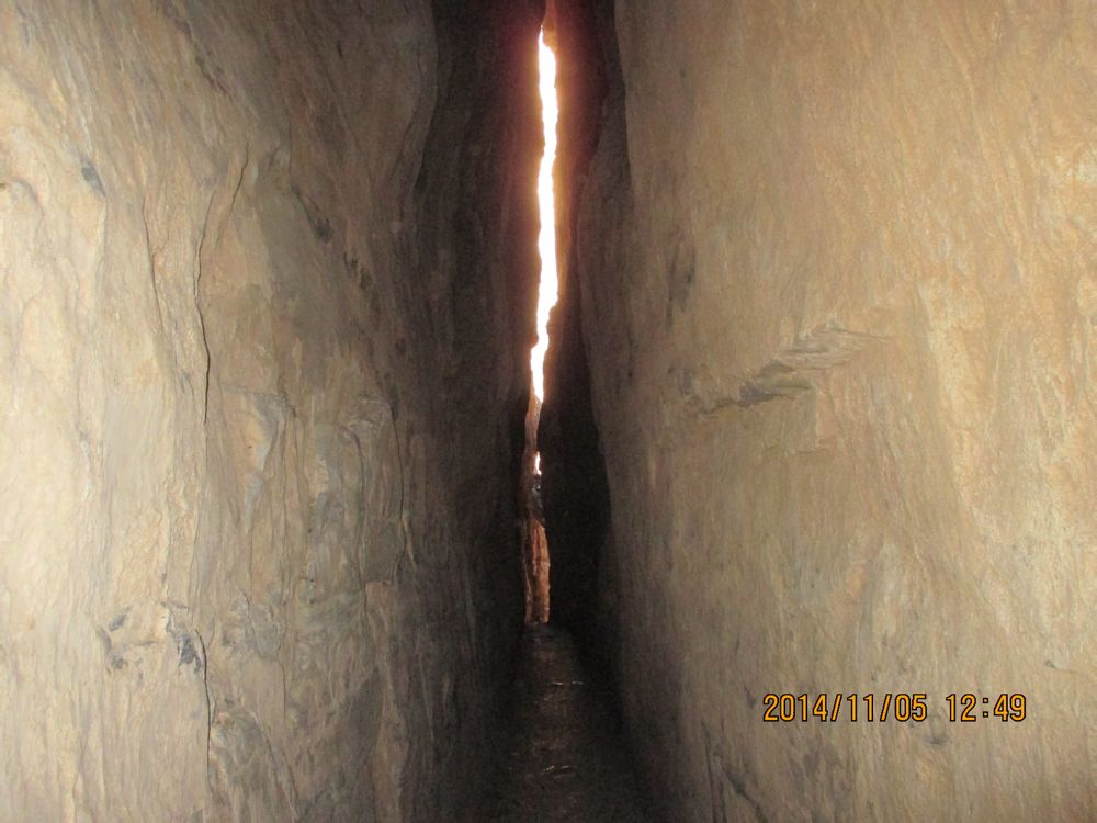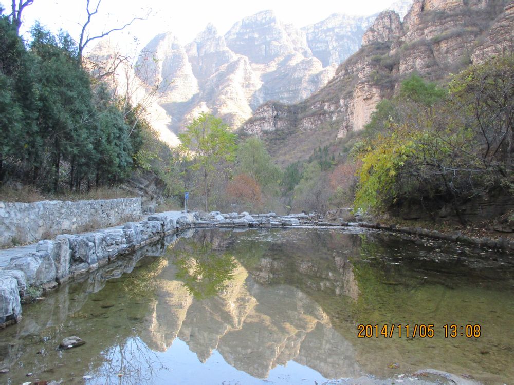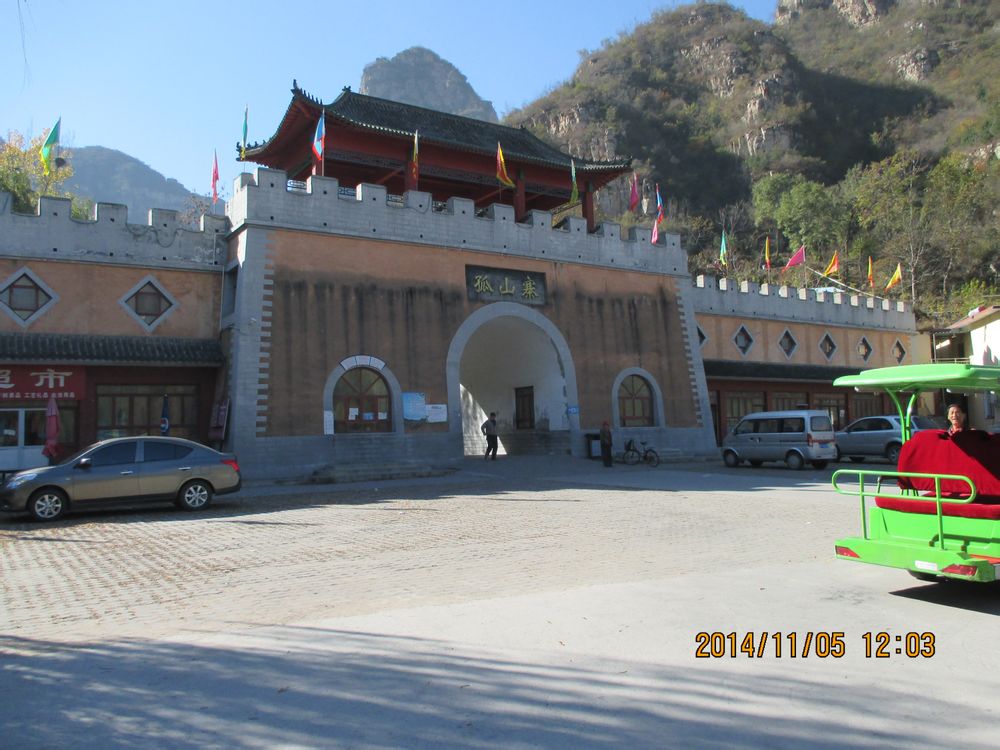 秋日,我去了北京郊区房山的孤山寨。孤山寨位于十渡风景区七渡村南,因三座孤立的山峰而得名。孤山寨景区也是一条大峡谷,步入峡谷,两侧山峰林立,怪石嶙峋,峡谷内有溪水潺潺流下,沿峡谷河床山路拾级而上,耸立的高山夹藏的峡谷,山势险峻,景致幽美。野人谷绵延数十里,可以踏着碎石,追逐着溪水、瀑布而上 。 十渡孤山寨有五大奇观:千古河床、小孤山、一线天、石中石、京郊第一铁索桥。孤山寨是十渡风景名胜区内最著名的一条大峡谷,深约10公里, 步入峡谷,两侧山峰林立,怪石嶙峋,越向里走,山势越险峻,峡谷越窄,最窄处仅为5米;越向里走,植被越丰茂,景致越幽美。孤山寨内步步皆景,四季如画。初春,山花烂漫,香飘万里;夏季,绿意欲滴,泉眼喷流,这里的最高气温不超过25摄氏度;秋风送爽,枫栌如火,柿闹枝头;冬季,瑞雪素裹,青松点翠。满眼尽是赏心悦目的异石奇景。为了登高远眺沿山腰羊肠小道我们呼哧带喘爬上了“一线天”,只见陡峭山坡的石壁之中裂开一条巨缝,两壁岩石直立,如刀削斧砍,巨缝长达60余米,高40余米,最窄处仅供一人通过。因裂隙很窄且深,内部光线很暗、凉爽宜人。抬头仰望,名符其实的“一线天”!