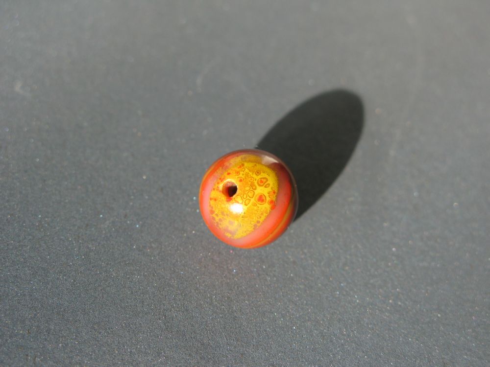 这颗珠子买的时候喜欢它的花纹,一面有点千朵花琉璃的感觉,另一面是豹纹,这次抛出来后效果提高。