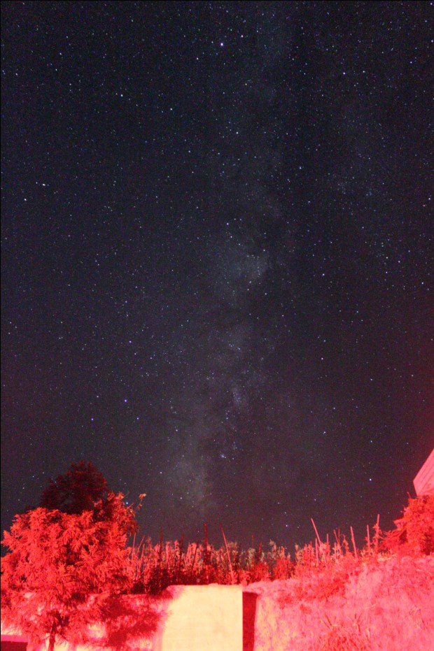 2013年8月13日凌晨在麻阳溪小学拍的银河,土坡上是玉米地,这是被汽车尾灯照亮的