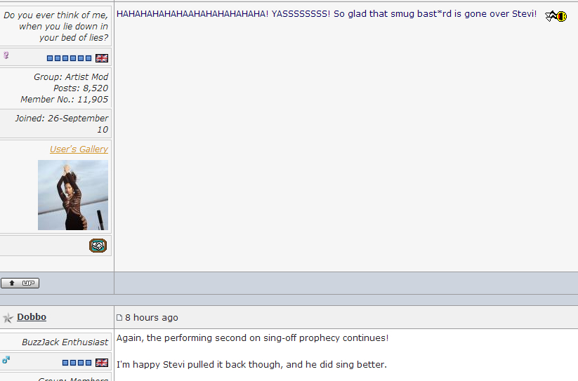 4.我也更希望STEVI留下!他的SING-OFF展现了不错的唱功,他又能娱乐大众,最关键的是,英国人喜欢他!当三爷投STEVI走时,全场嘘声不断!当MEL B选择留下STEVI时,全场掌声雷动!虽然说没二笔和雪梨根本就是为自己利益考虑,但是客观上满足了英国人的民意,普遍好评啊!