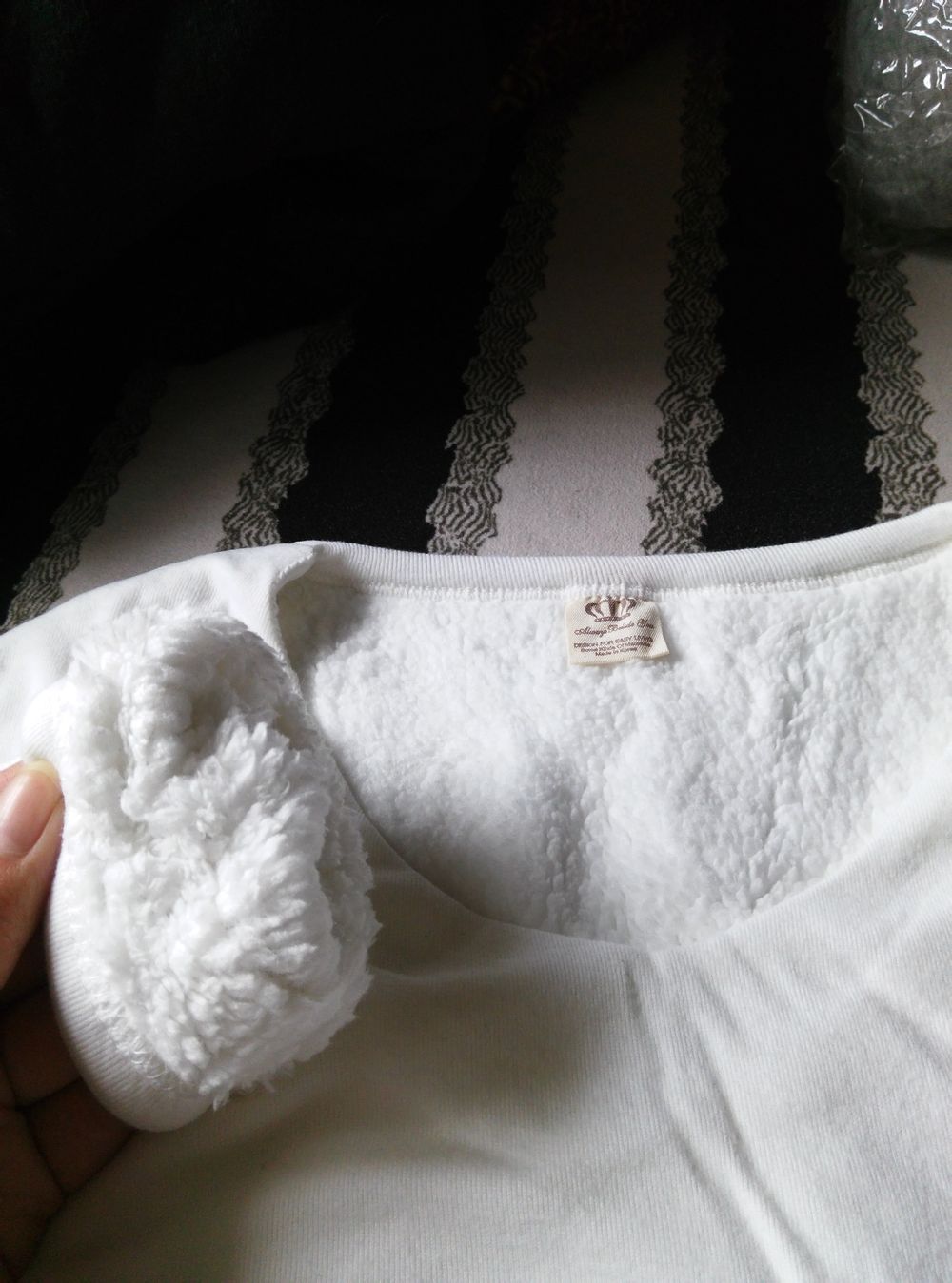 内里加厚的打底长T 袖子也加绒哦 看图感受下厚度 冬天最冷的时候穿件这个 加个羽绒背心就超保暖了