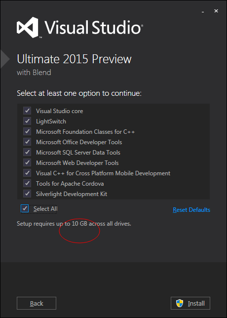 这。。我装在D盘,但是这里没有显示C盘会占多少。。只说总共会要10G。。