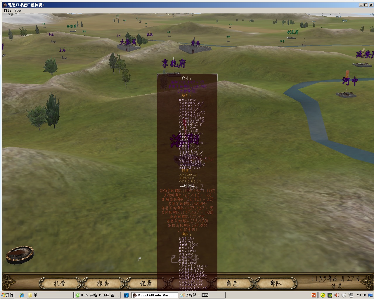 到处乱转 不知不觉 来到大宋 发现大散关被西夏占着 选个西夏农民 开战 然后去支援大散关 没想到大宋拿下大散关就和西夏议和了 好坑 早知道在旁边等西夏大鱼 还能赚钱和兵