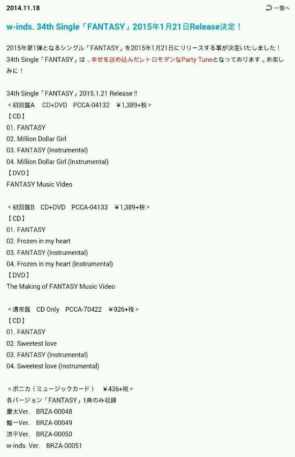 2015年第1弾となるシングル「FANTASY」を2015年1月21日にリリースする事が决定いたしました!