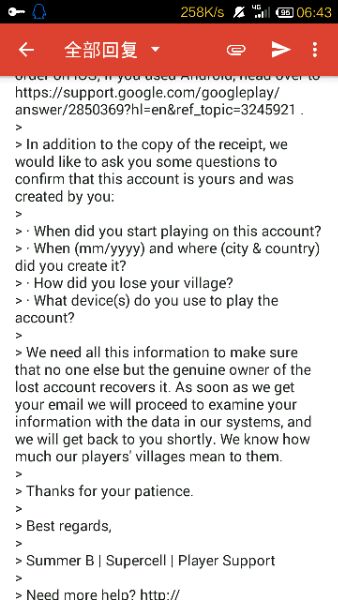嗯,SC发来的邮件是有please type your reply above this line(请在这条线前面写你的回复)所以还是在原文上加你的回答吧